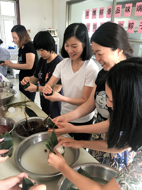 端午近,粽香飘。在传统节日端午佳节临近之际,为了丰富节日气氛、传承文化习俗, 6月15日上午,北京碧圣联合水务有限公司工会以弘扬中华传统文化为重点,突出人文关怀,积极营造节日氛围,在公司职工食堂组织开展了“浓情粽香 品味端午 ”包粽子活动。